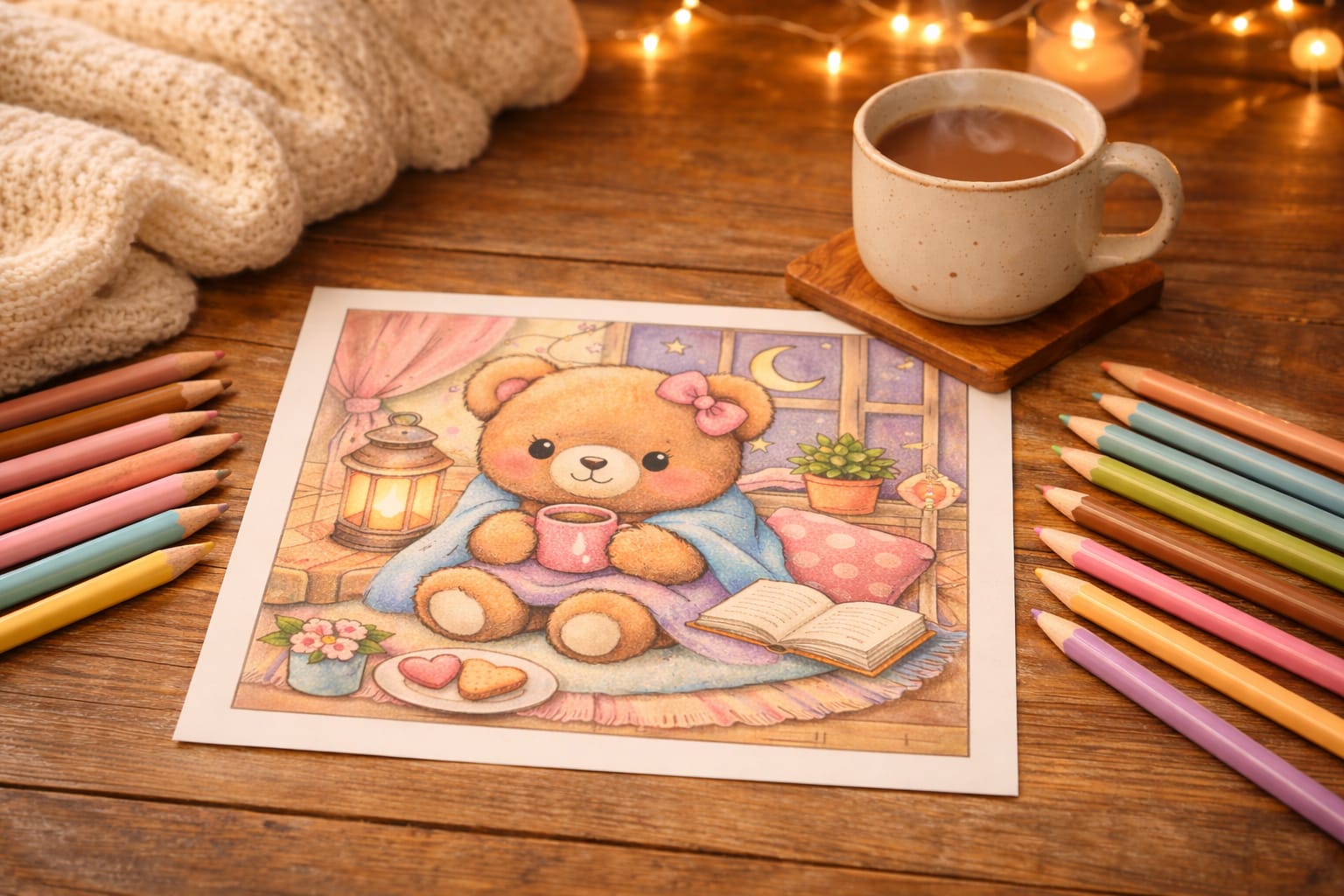 ✨ Tu momento favorito del día empieza con una mantita, tu música favorita y algo para colorear